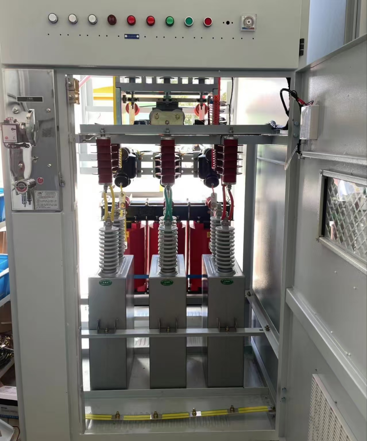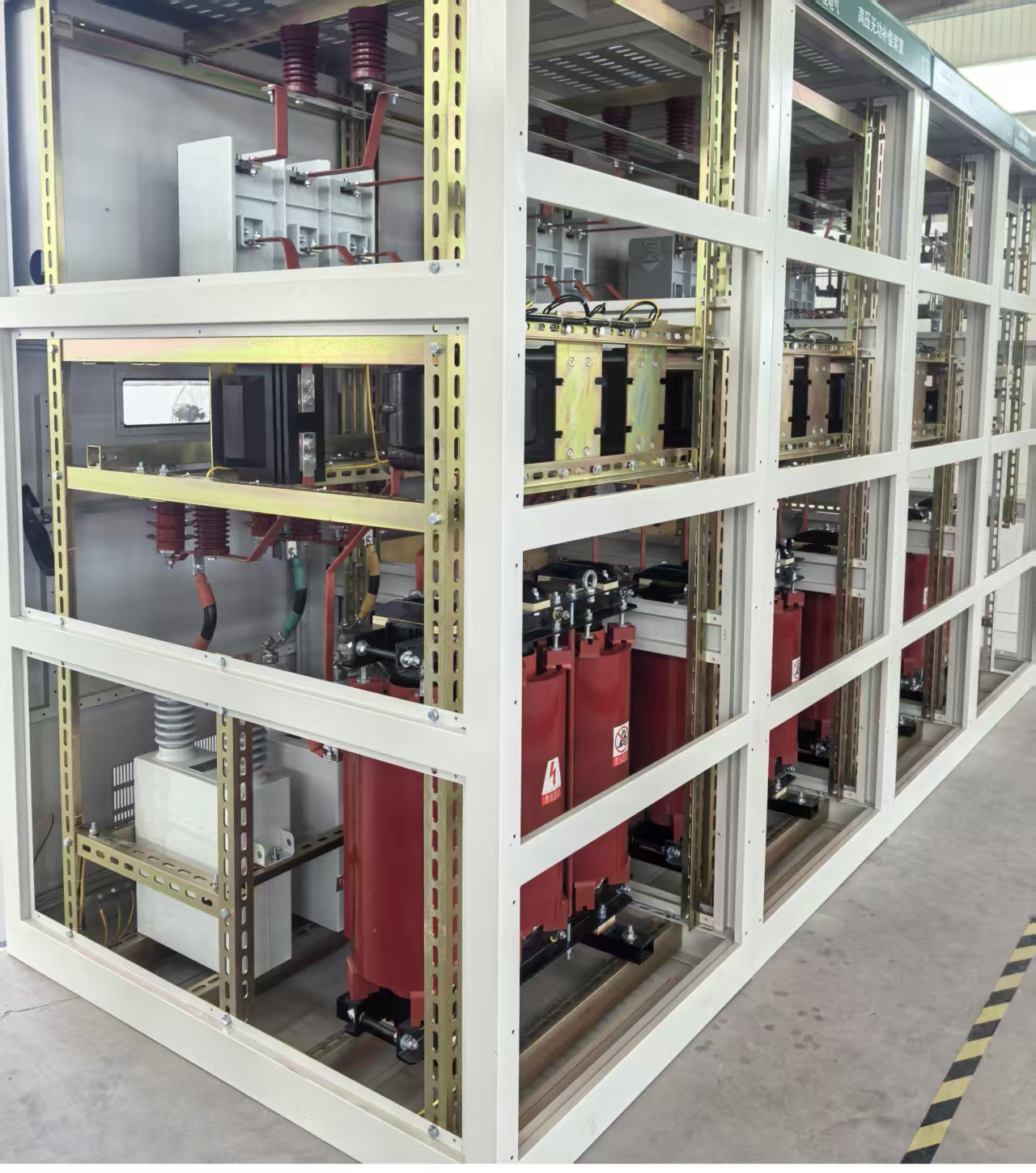 装置由开关柜、电容、电抗器柜(架)三部分组成。分户内,户外两种形式。开关柜形式一般为XGN2-12- ,KYN- 等。